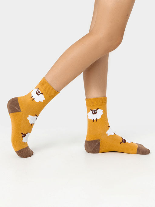 Цена за 5 пар! Теплые Носки детские с плюшевым следом и рисунком в виде барашков
