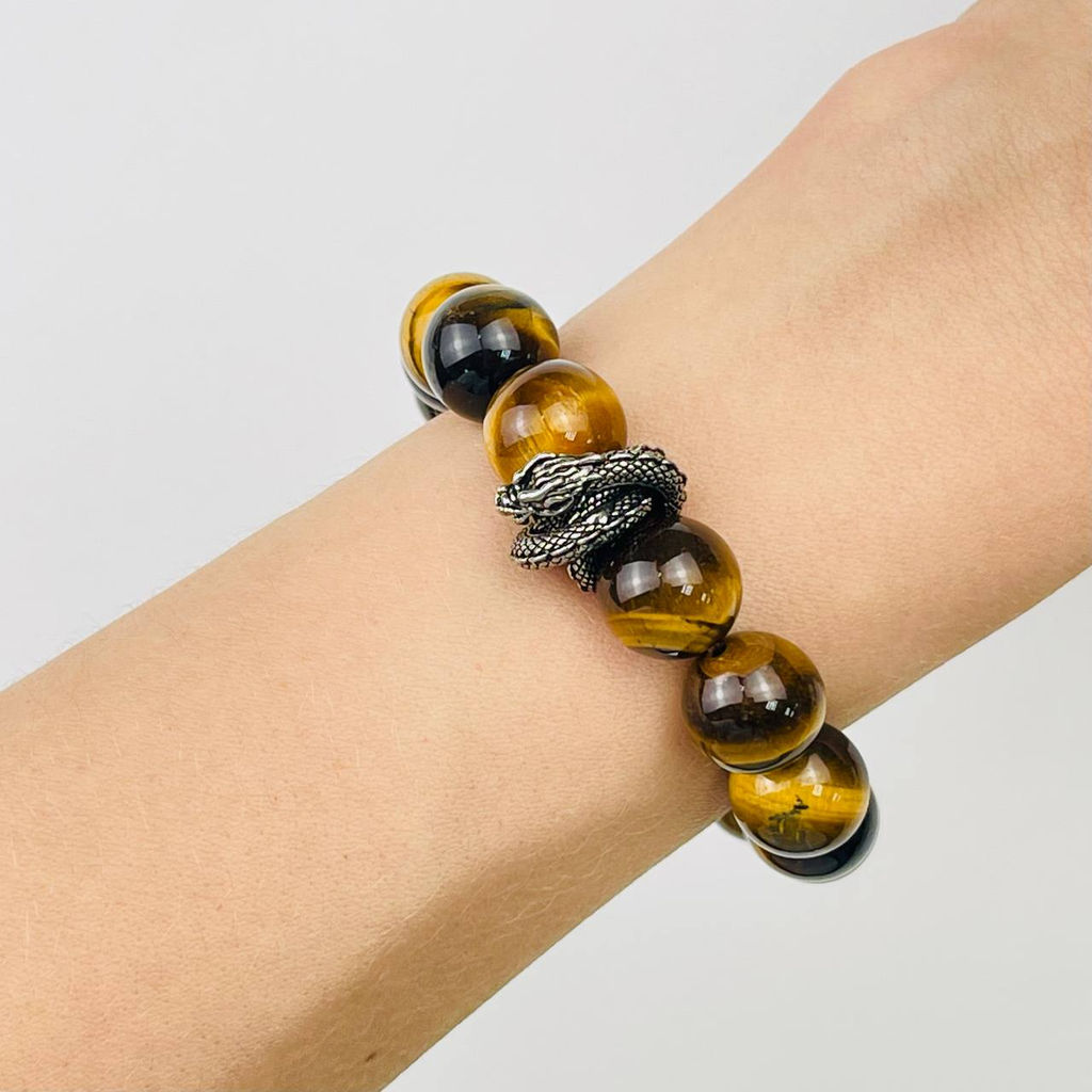 Браслет мужской "Дракон" из Тигрового глаза 19 см