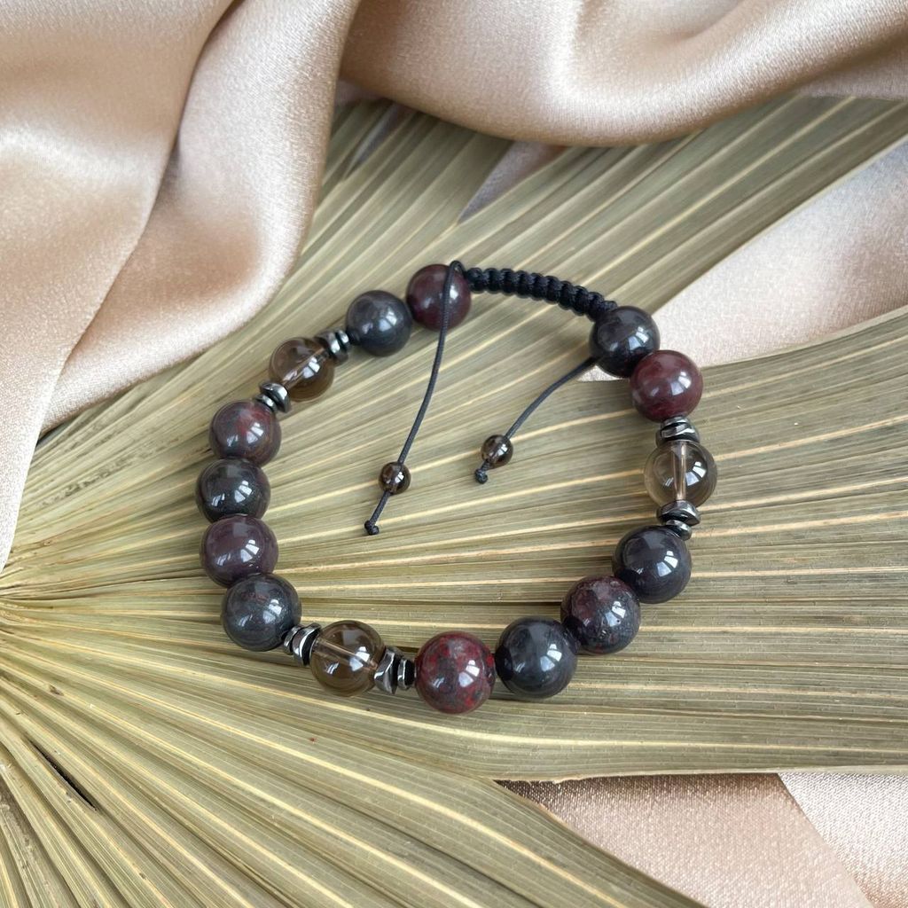 Браслет регулируемый из Яшмы и Раухтопаза от 18 см