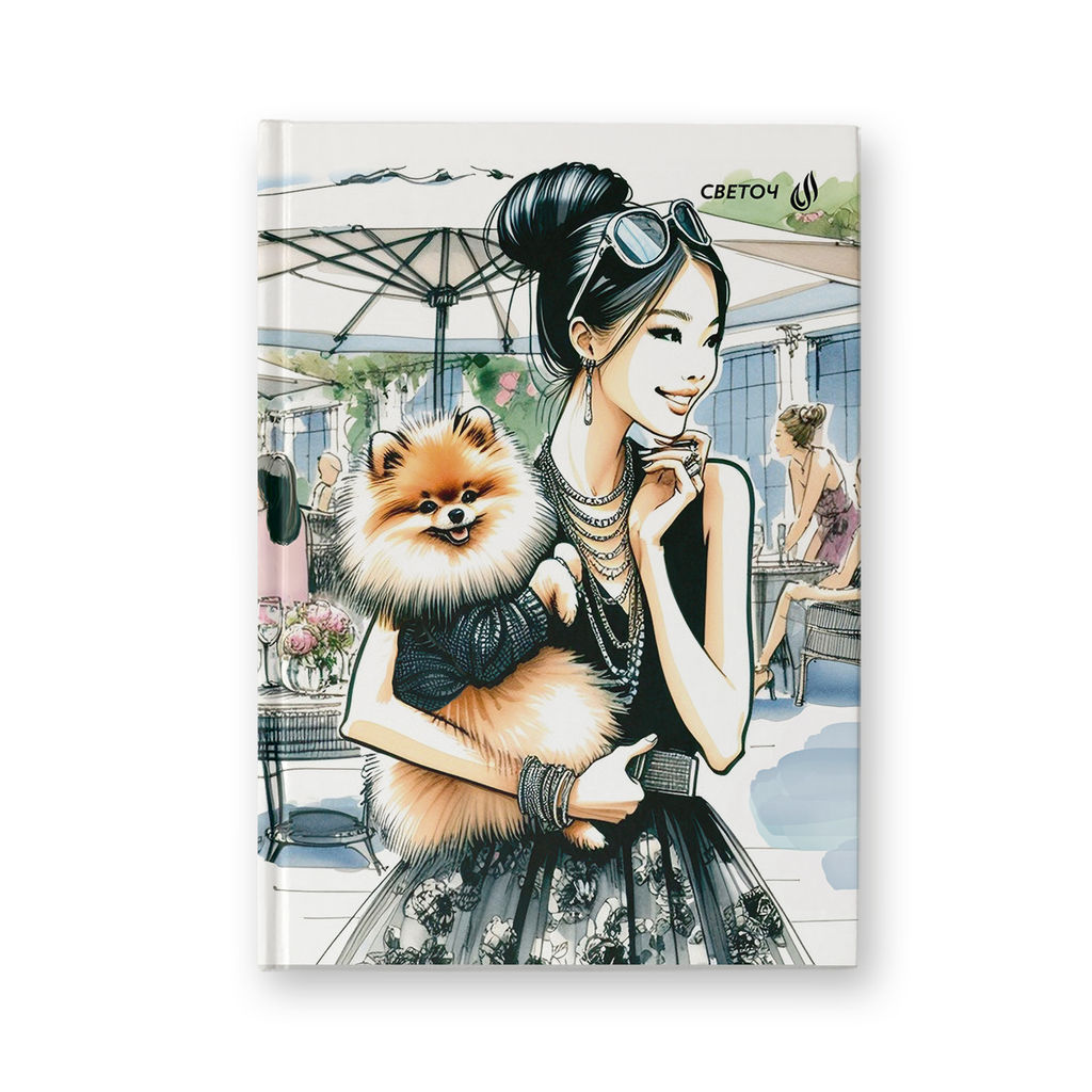Светоч Бизнес-блокнот, мат.ламин.+выбор.лак, блок кремовый, ББ246 евроформат ( 14.4*20.3*1.6 см) 64 л. 4 шт. французская клетка Дама с собачкой 01672