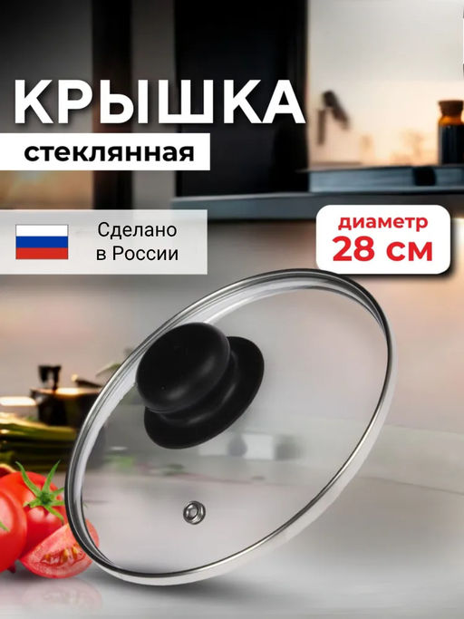 Крышка с ручкой стеклянная с металлическим ободком 28 см 4728 (4128)
