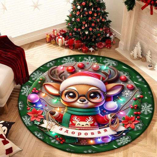 Уютный и очень красивый Новогодний коврик, противоскользящий, диаметр 900 мм