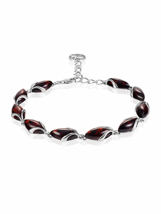 Яркий браслет Подснежник с тёмно-вишнёвым янтарём