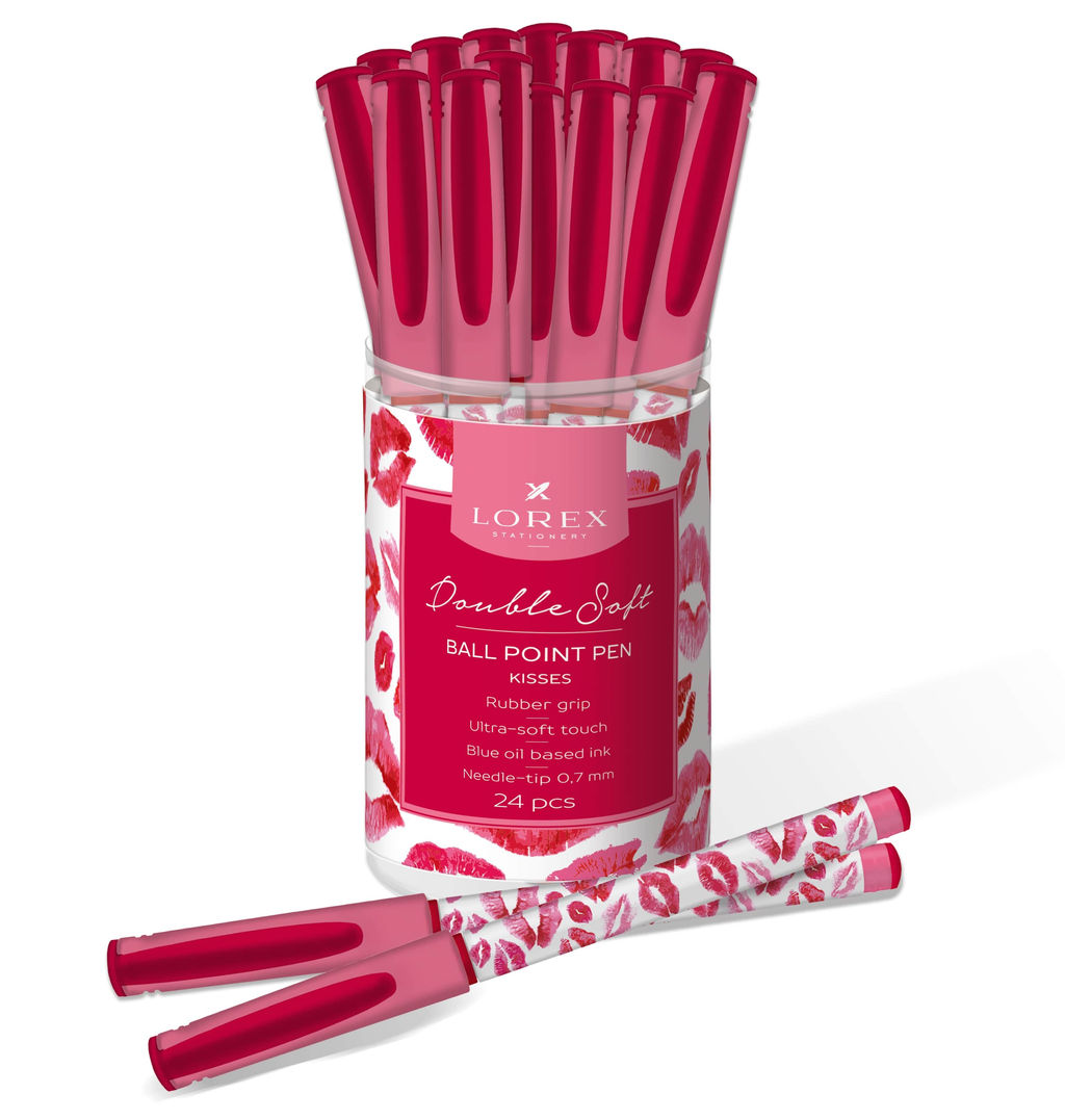 Ручка шариковая на масляной основе LOREX KISSES Double Soft синяя 0,7 мм, ассорти круглый ...