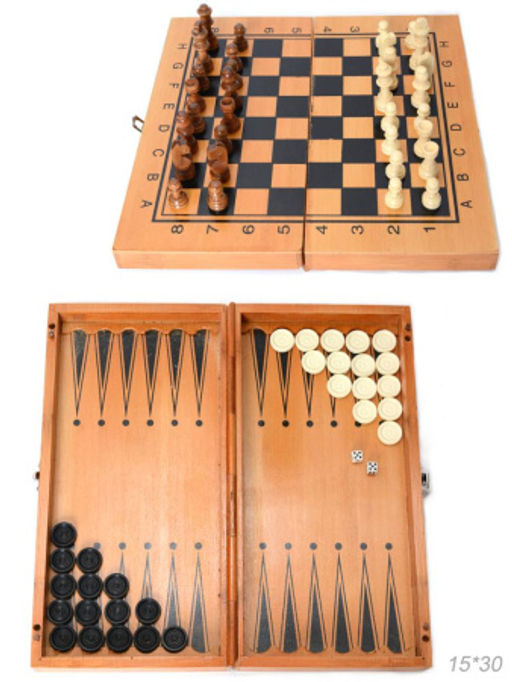 Игра настольная 3 в1 Нарды шахматы шашки 15х30 см / 341-161 /уп 48/
