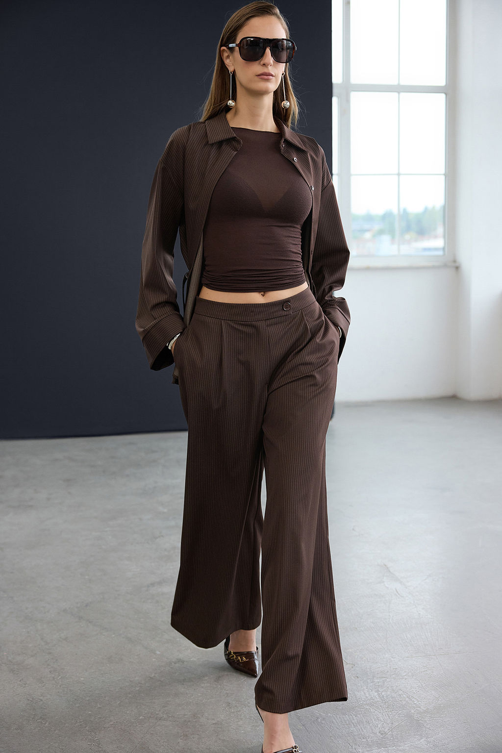 Trendyol Studio Kahverengi Ekstra Genis Paca Cizgili Pantolon TWOAW26PL00127