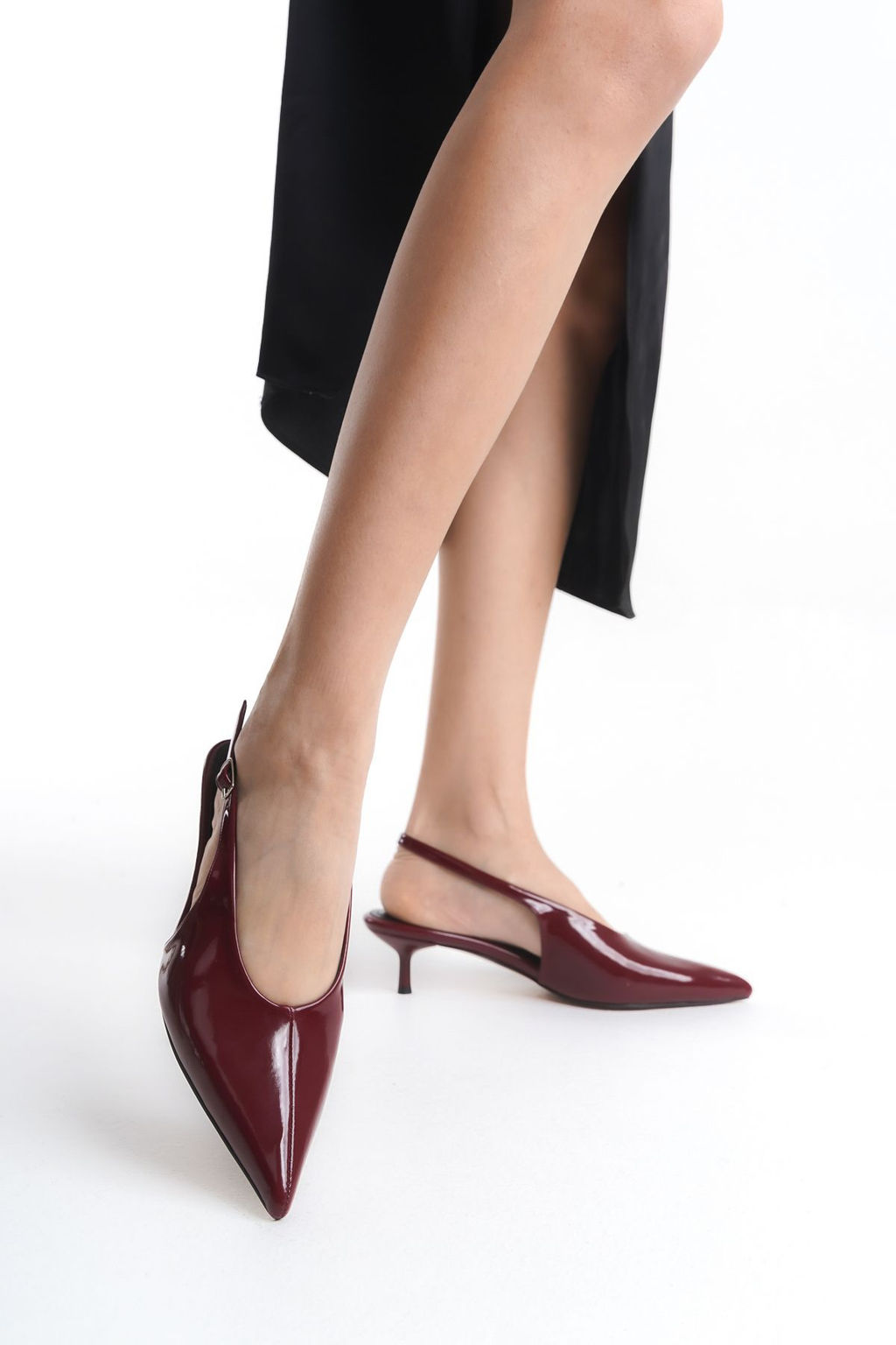 Trendyol Shoes Bordo Rugan Sivri Burun Kad?n Kitten Topuklu Ayakkab? TAKSS25TO00073