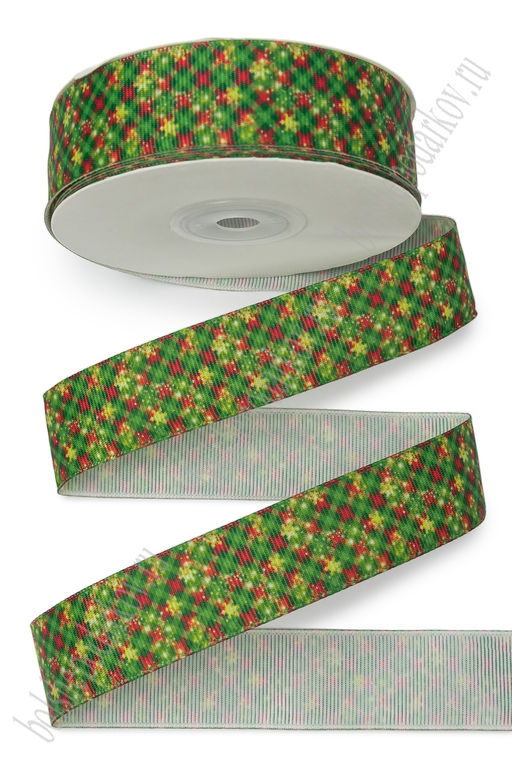 Лента репсовая 2,5 см*25 ярд с рисунком "Новогодняя" SF-7527, №2
