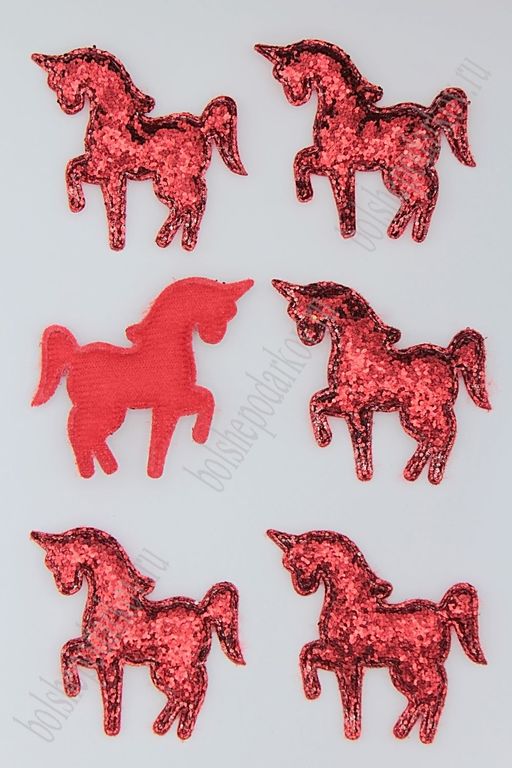 Патч 3D, россыпь пайеток "Единорог" 6*5 см (10 шт) SF-1889, красный