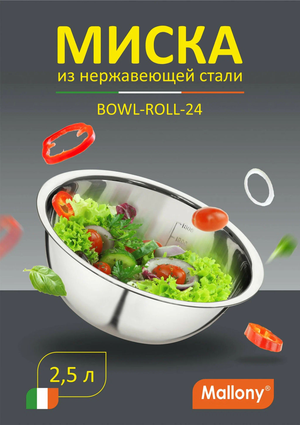 Миска из нерж.стали BOWL-ROLL-24 2,5л (003278)