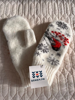 Варежки женские "Снегирь и снежинки" КРУГ 3472-1