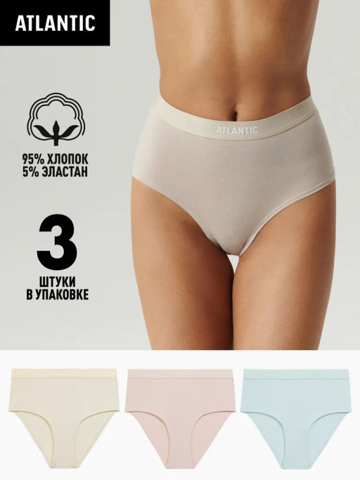 ATLANTIC 3CLP-009 Трусы макси спорт Maxi Sport - набор 3 шт. бежевый + ванильный + светло-голубой