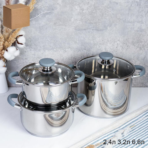 Кастрюля набор 6 предметов 2.4л, 3.2л, 6.8л Элиос / LB-S-1106E-6 /уп 1/ индукция/ ручки с силиконом/ Гофрокороб/ KISIGA