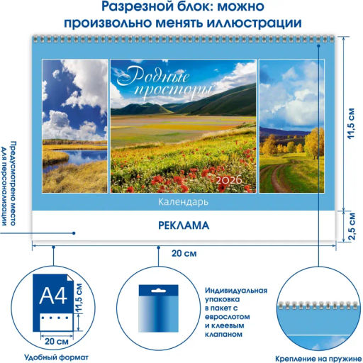 Календарь-домик настольный 2026 Родные просторы 200х115мм