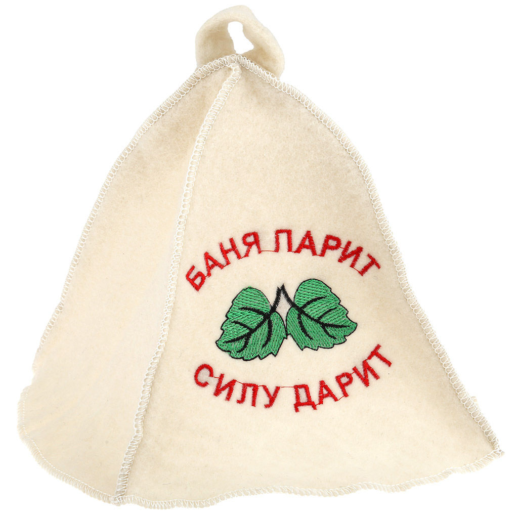 Шапка для бани и сауны из фетра "С легким паром" 34х25см, белый, "Бацькина баня" (Россия)