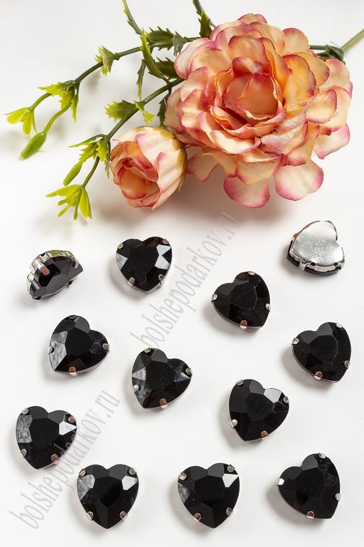 Стразы пришивные 16 мм "Сердечко" (10 шт) SF-3715, черный №16
