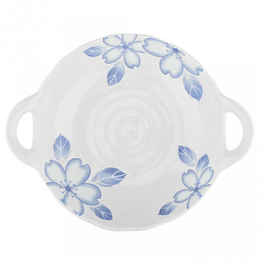 "Мечта" Салатник фарфоровый 700мл, д19,7см, h5см, с деколью, волнистый край, 2 ручки (общий размер 24,5х6см), белый/голубой (Китай)