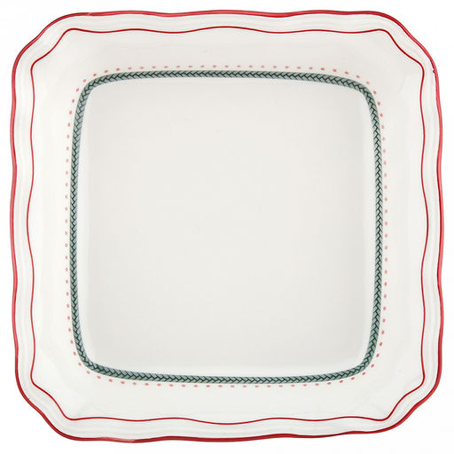 "Карельская брусника" Тарелка глубокая фарфоровая 190х190х40мм, 590мл, с деколью, квадратная, отводка, волнистый край, белый (Китай)