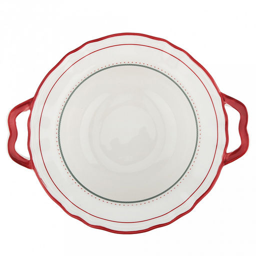 "Карельская брусника" Салатник фарфоровый 680мл, д19см, h6,8см, с деколью, волнистый край, отводка, 2 ручки (общий размер 23х7,3см), белый (Китай)