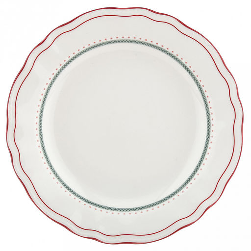 "Карельская брусника" Тарелка мелкая фарфоровая д217мм, h30мм, с деколью, отводка, волнистый край, белый (Китай)
