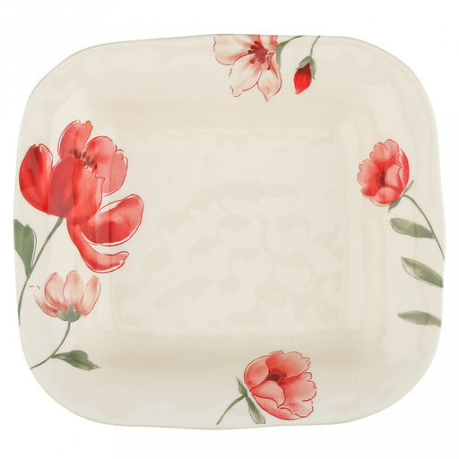 "Бархатный мак" Тарелка глубокая фарфоровая 213х195х40мм, 560мл, с деколью, кремовый (Китай)
