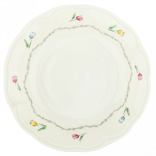"Ласковый май" Тарелка глубокая фарфоровая д17,6см, h4,2см, 460мл, с деколью, рельефный декор, волнистый край, кремовый (Китай)