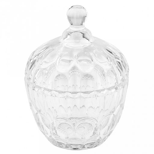 Конфетница стеклянная "Ягода малинка" 280мл, д9,5см, h7см, стеклянная крышка, общий h13,5см, в коробке, "Дели Гласс (Deli Glass)" (Китай)