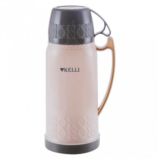 Термос со стеклянной колбой "Kelli" 1л, корпус пластиковый, 2 чашки в комплекте, ручка для переноски, кофейный (Китай)
