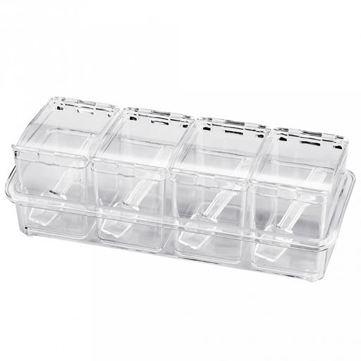 Контейнер для специй пластмассовый "Desco" 23,5х7,5х9,5см, набор 4шт в лотке, прозрачные крышки, с ложками, "Regent" (Китай)