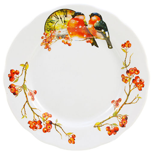 Тарелка мелкая фарфоровая "Снегири" д200мм, h25мм, вырезной край (Россия)