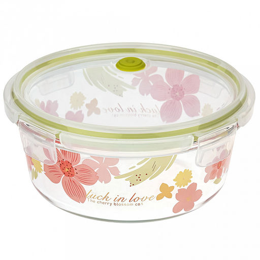 "Лак ин лав (Luck in love)" Контейнер стеклянный 900мл, д17см h6,6см, боросиликатное стекло, с деколью, круглый, пластмассовая крышка с пароотводом, герметичная, с клипсами, с силиконовым уплотнителем (Китай)