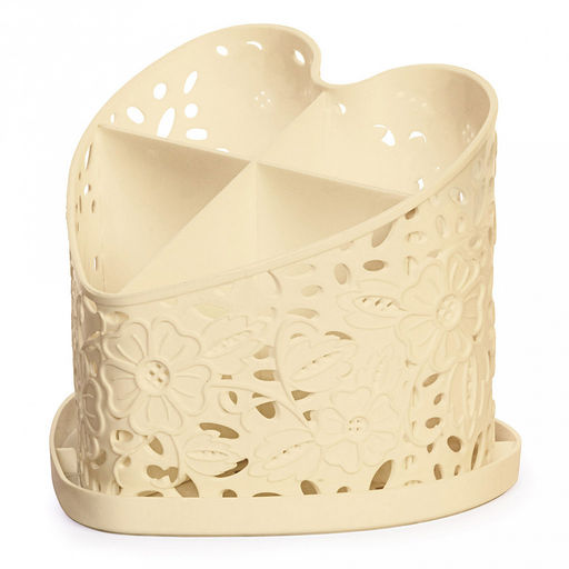 Подставка для столовых приборов пластмассовая "Сердце" 19х17х15см, 4-х-секционная, бежевый (Россия)