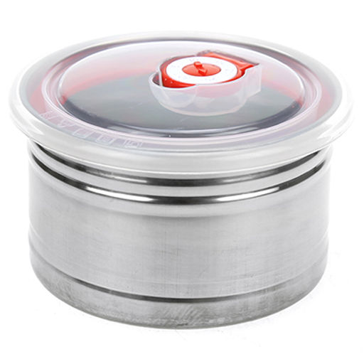 Банка для сыпучих продуктов из нержавеющей стали 0,8л, д12,5см, h7,5см, крышка пластмассовая с пароотводом, в коробке (Китай)