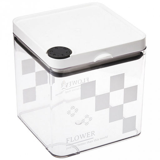 "Шахматы" Банка для сыпучих продуктов пластмассовая 0,7л, 9,8х9,8см, h10,5см, прозрачный, с деколью, прижимная крышка с силиконовым уплотнителем (Китай)