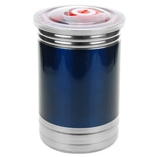Банка для сыпучих продуктов из нержавеющей стали 1л, д10см, h15см, крышка пластмассовая с пароотводом, цветной корпус, синий, в коробке (Китай)
