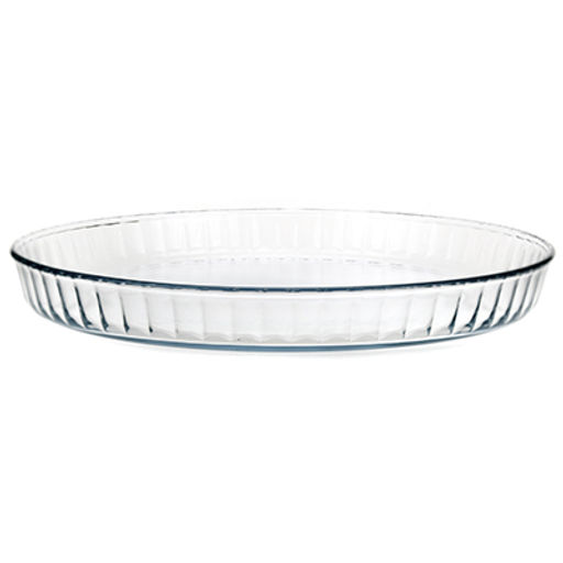 Форма стеклянная для запекания "Рифленая" 2л, круглая, д30см h3,7см термостекло, в цветной коробке (Китай)
