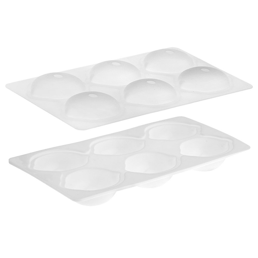 Форма силиконовая для муссовых десертов, пирожных и выпечки "Лимон - 6 ячеек" состоит из 2-х частей, 25,4х12,6х5,8см, размер ячейки 7х5х5,8см, цвет - белый (Китай)