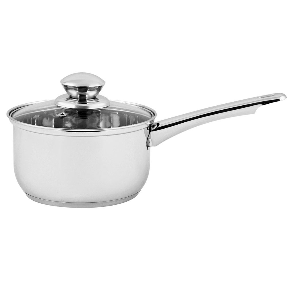Ковш из нержавеющей стали "Greta" 1л, д15,5см, h11см, s0,4мм, дно s1,3мм, длина 30,5см, стеклянная крышка, Appetite (Китай) Подходит для всех видов плит, включая индукционную.