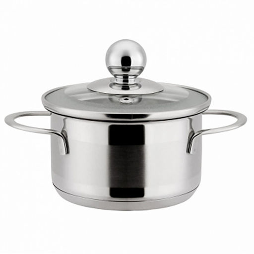 "Zeidan" Кастрюля из нержавеющей стали 0,8л, д12см, стеклянная крышка с матовой тонировкой, зеркальная полировка внутри и снаружи, декоративная полоса на корпусе, 5-ти степовое капсулированное индукционное дно, подарочная упаковка (Китай) Подходит дл