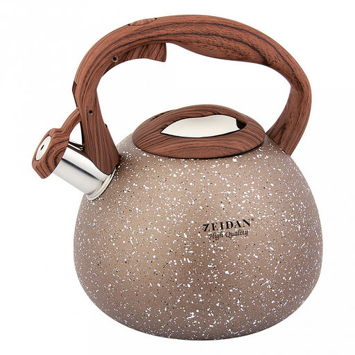 Чайник из нержавеющей стали "Zeidan" 3л, со свистком, литой корпус, внешнее антипригарное мраморное покрытие, устойчивое к высоким температурам, фиксированная прорезиненная ручка "под дерево", курковый механизм, индукционное дно, коричневый, подарочн