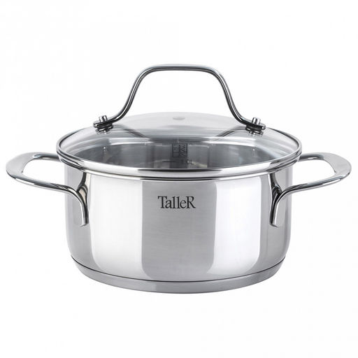 Кастрюля из нержавеющей стали "Элиас" 1,5л, д16см, h8см, s0,6мм, дно s2,8мм, стеклянная жаропрочная крышка, стальной обод, пароотвод, капсулированное дно, полировка внешняя - зеркальная, внутренняя - зеркальная, мерная шкала, цветная коробка, "TalleR