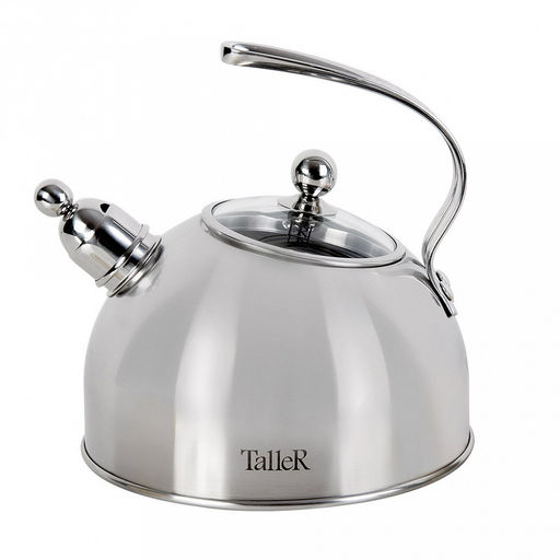 Чайник из нержавеющей стали 2,5л "Iness" s0,6мм, дно д17см, s4мм, со свистком, стеклянная крышка, полировка внешняя - матовая, внутренняя - зеркальная, капсулированное дно с алюминиевой вставкой, изготовлен методом завальцовки, "TalleR" (Китай) Подхо