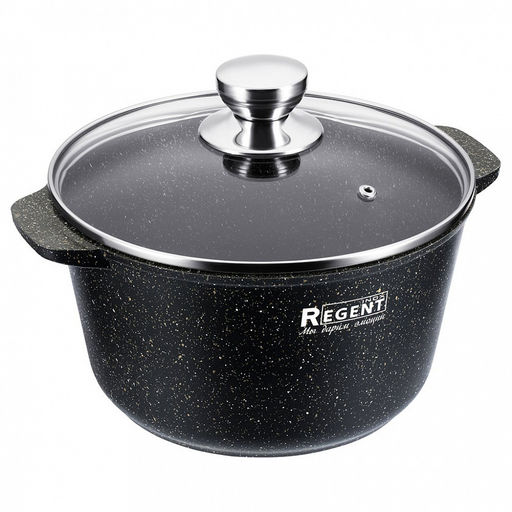 Кастрюля с антипригарным покрытием "Cosmo" 3,8л, д15см, h24см, s3,8мм, дно s4,5мм, стеклянная крышка с пароотводом, эргономичная ручки, литой алюминий, цветная коробка, "Regent" (Китай)