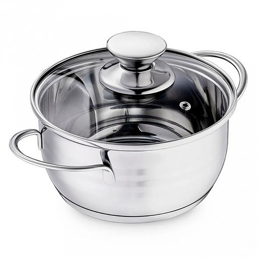 Кастрюля из нержавеющей стали "Bimbo Vitro" 1л, д14см, h7см, s0,5мм, дно s2,9мм, стеклянная крышка, ручки из нержавеющей стали, точечная сварка (Китай) Подходит для всех видов плит, включая индукционную.