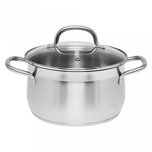 Кастрюля из нержавеющей стали "Victoria" 5,4л, д22см, h13см, s0,5мм, дно s3мм, стеклянная крышка, цветная коробка, "Appetite" (Китай) Подходит для всех видов плит, включая индукционную.