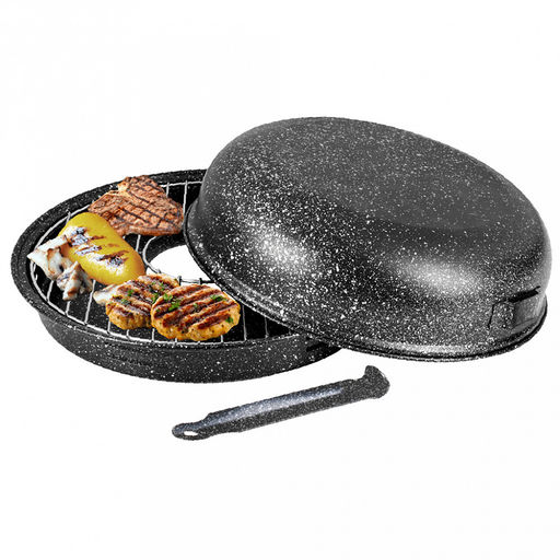 Сковорода гриль-газ "Kelli" 33,5х10х33,5см, антипригарное мраморное покрытие, съемная ручка, система эффективного распределения тепла (Китай)