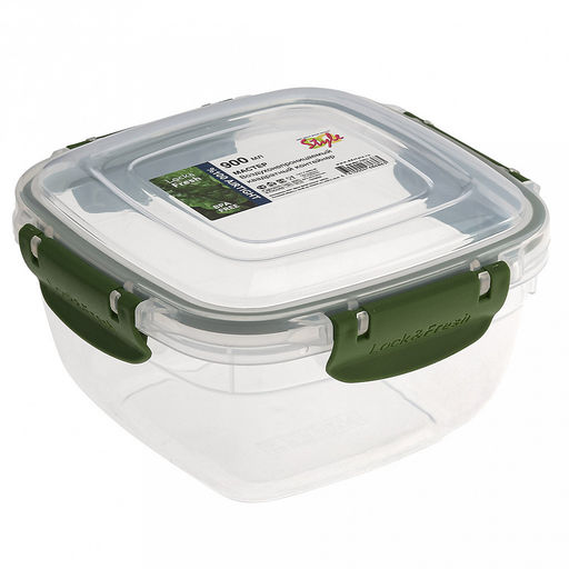 Контейнер для продуктов пластмассовый "Мастер" 0,9л, 14,3х14,3х8см, квадратный, с клипсами, воздухонепроницаемый (герметичный), съемный силиконовый уплотнитель, подходит для СВЧ, цвета микс (Россия)