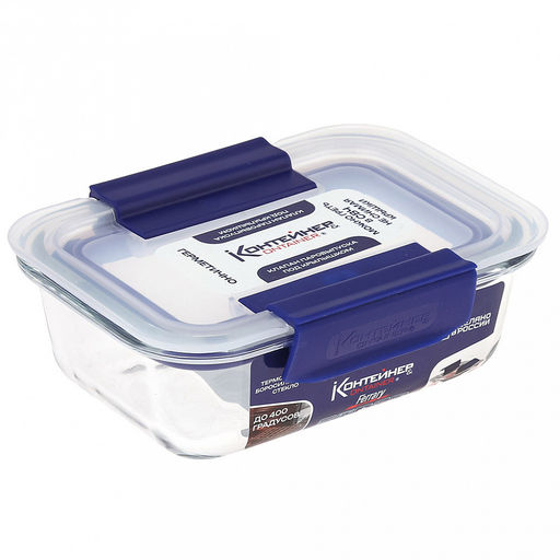 Контейнер стеклянный "FerraryUltra" 0,37л, 15х11,5х5,5см, из жаропрочного стекла, герметичный, крышка с уплотнителем, прозрачный, подходит для СВЧ (Россия)