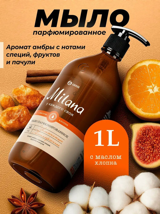 GRASS жидкое мыло 1000мл MILANA Парфюмированное с дозатором Амбра и пачули