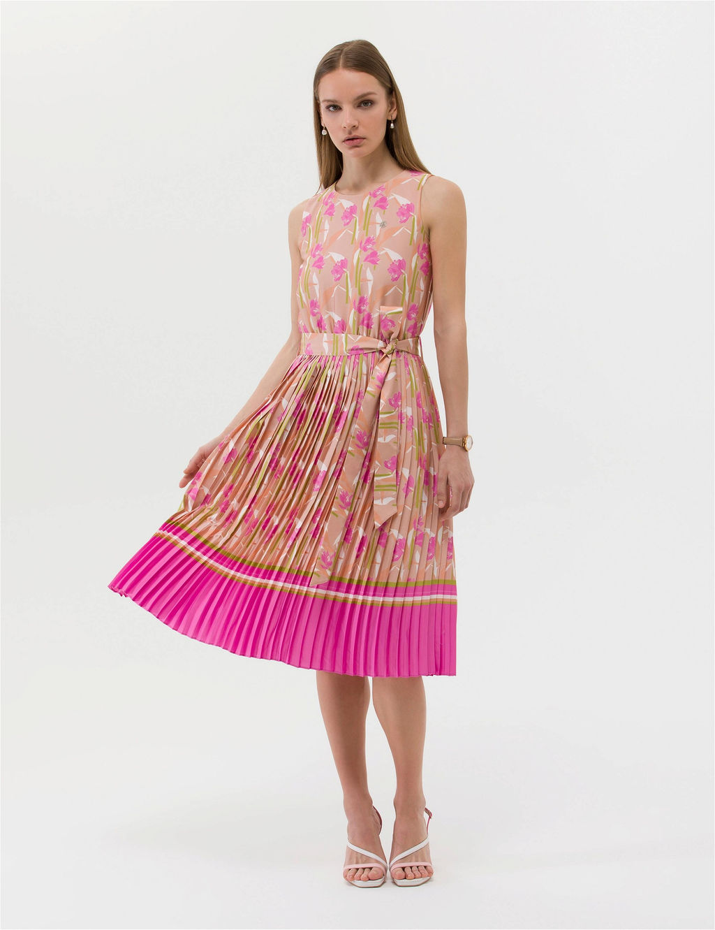 Fu_ya Ku_ak Detayl_ Pileli Midi Elbise